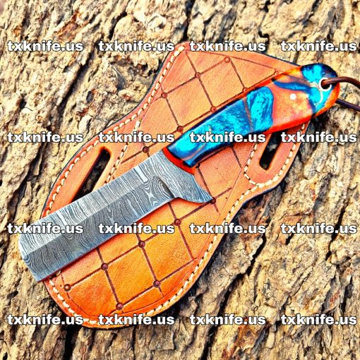 custom made 7.5″ western cowboy bull cutter knife with damascus blade.