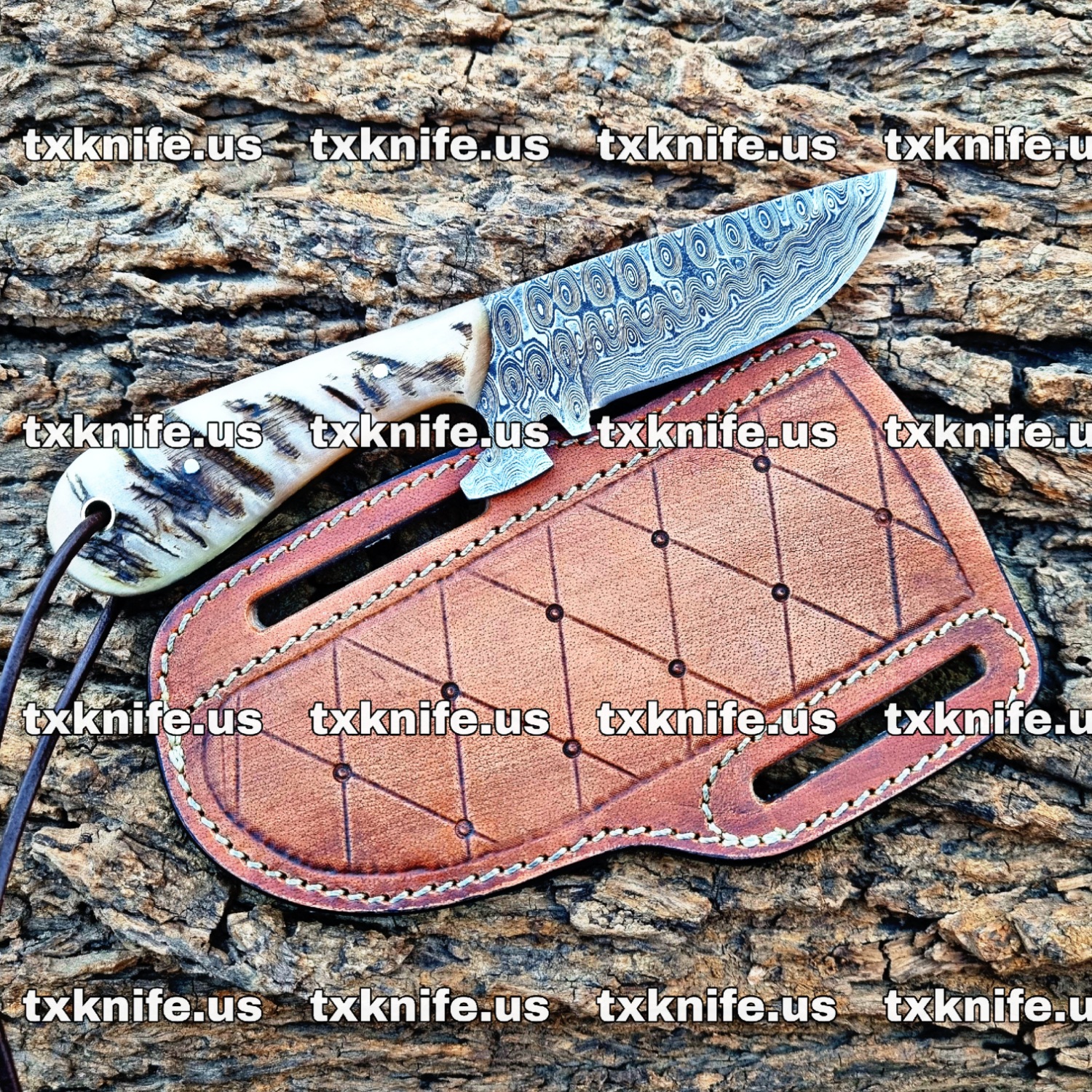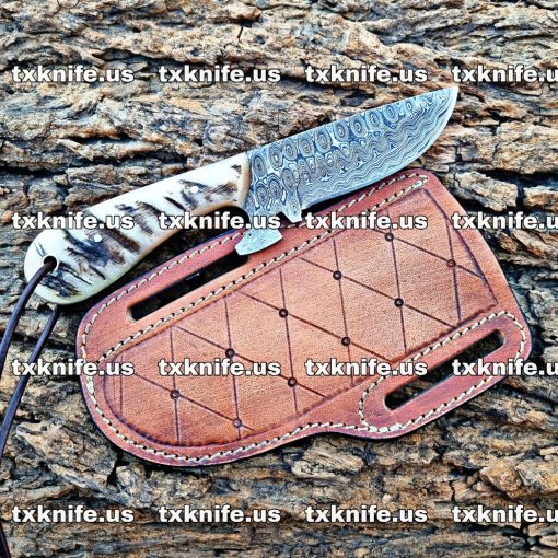 7.5″ handmade western cowboy knife with damascus steel blade…