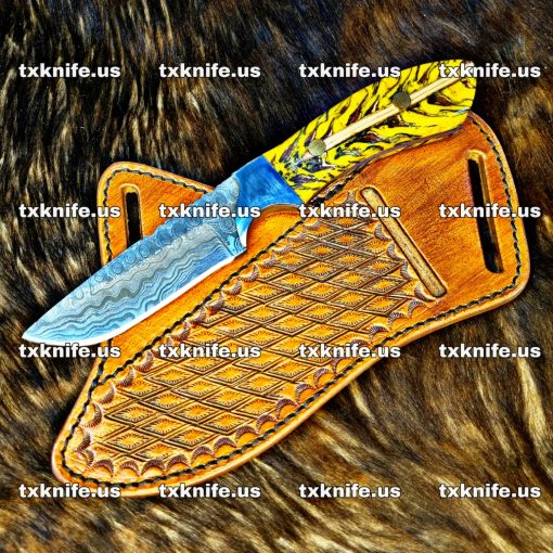 7.5″ Made Of Damascus Steel with pinecone and Steel Bolster Handle.