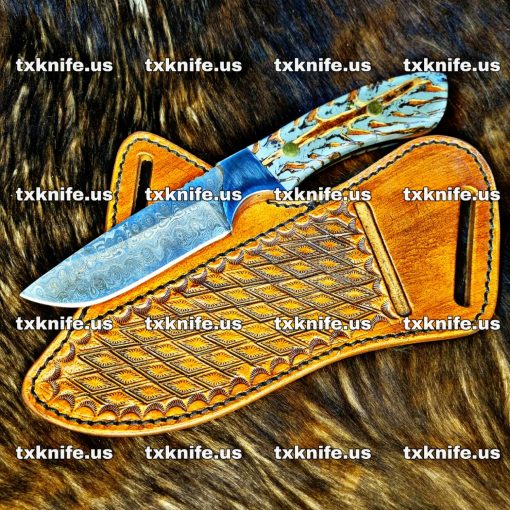 7.5″ Made Of Damascus Steel with pinecone and Steel Bolster Handle.